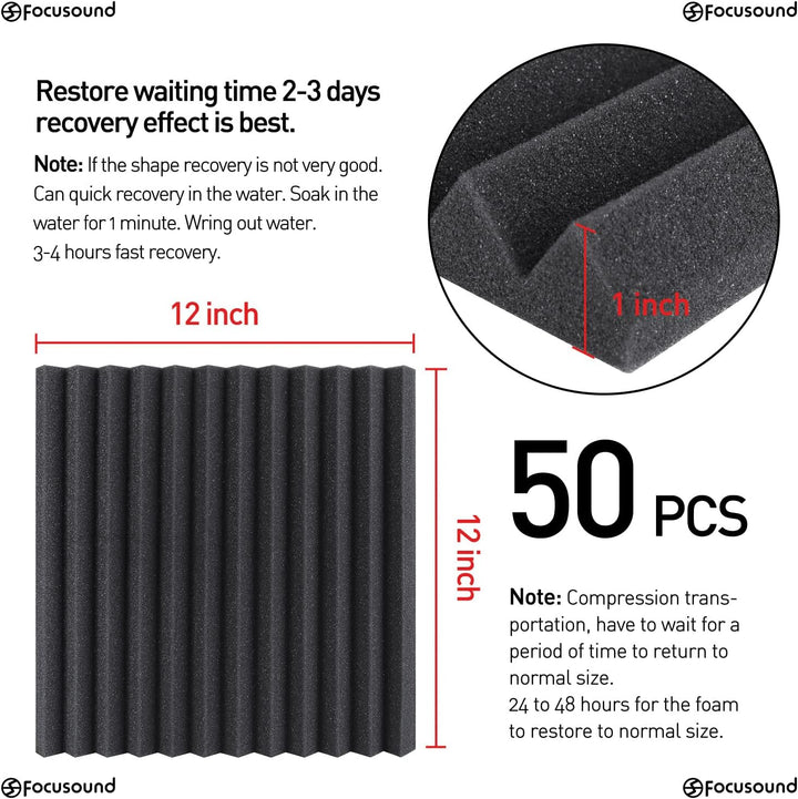 - Easy Shape Recovery: If the sound proof foam panels do not return to its original shape, simply soak it in water for a few minutes, then let it air dry. It will typically regain its form within 24 to 48 hours.