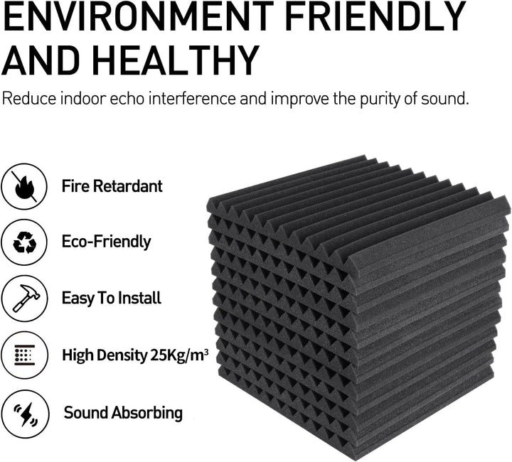 - Soundproofing - Acoustic foam panels triangular grooves structure for better noise absorption, helps to reduce and absorb unwanted echoes, waves, reverb and flutter echoes for better recording effect.
