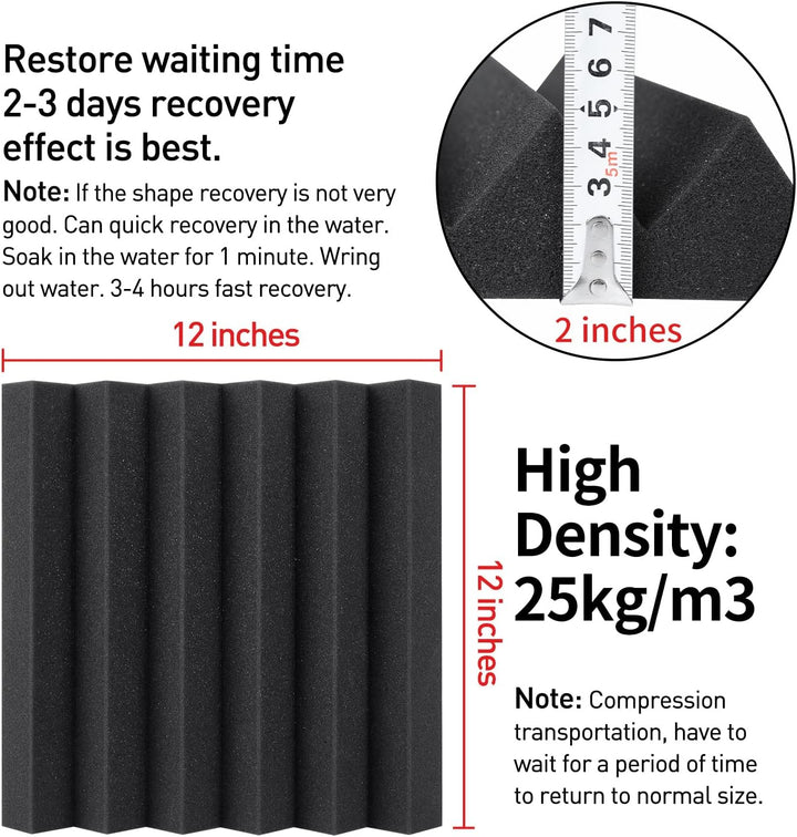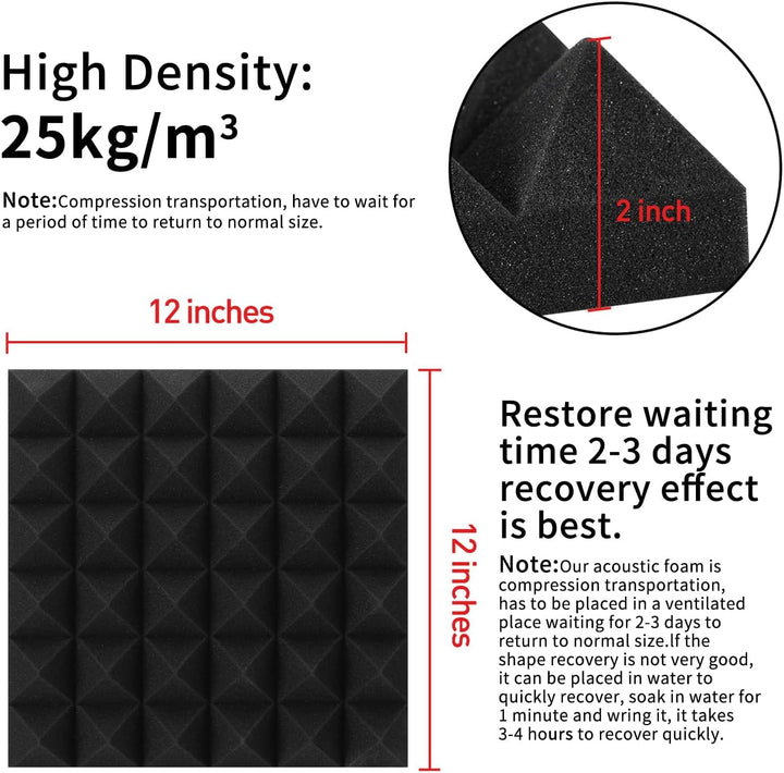 - High Density 25Kg/ : Our acoustic foam are made from a non-toxic, fireproof and high-density polyurethane material. Passed the environmental protection, is a safe and reliable product. Note: Our acoustic foam is compression transportation, has to be placed in a ventilated place waiting for 2 days to return to normal size.