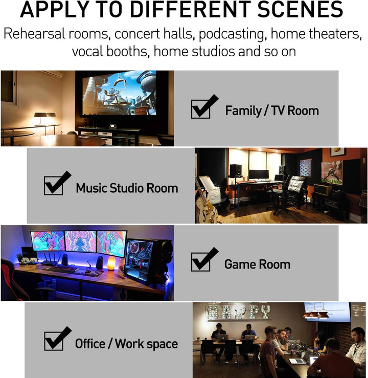 - Wide Application: For professional acoustic control, sound absorption and reverberation reduction. Suitable for your studio or office, home/recording studios, vocal booths, control rooms, home theaters, professional movie theaters, concert halls, and more. Ideal for both home studio and professional use.