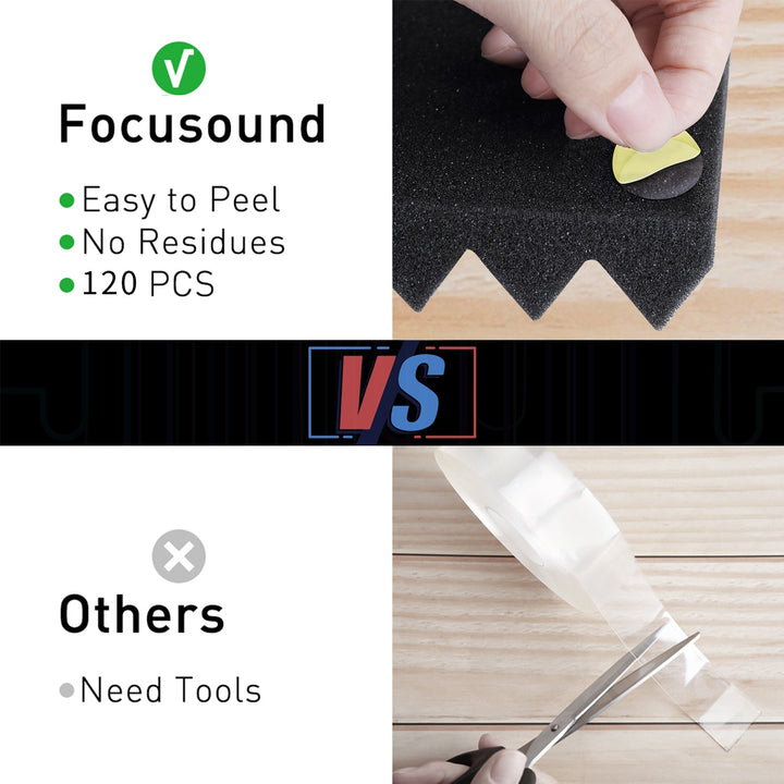 - Without Damaging Your Wall: Our acoustic foam panles are equipped with 120 PCS double side adhesive tape which can be easily washed. It is easily removable and will not damage your walls or surfaces, tear off without leaving any traces.