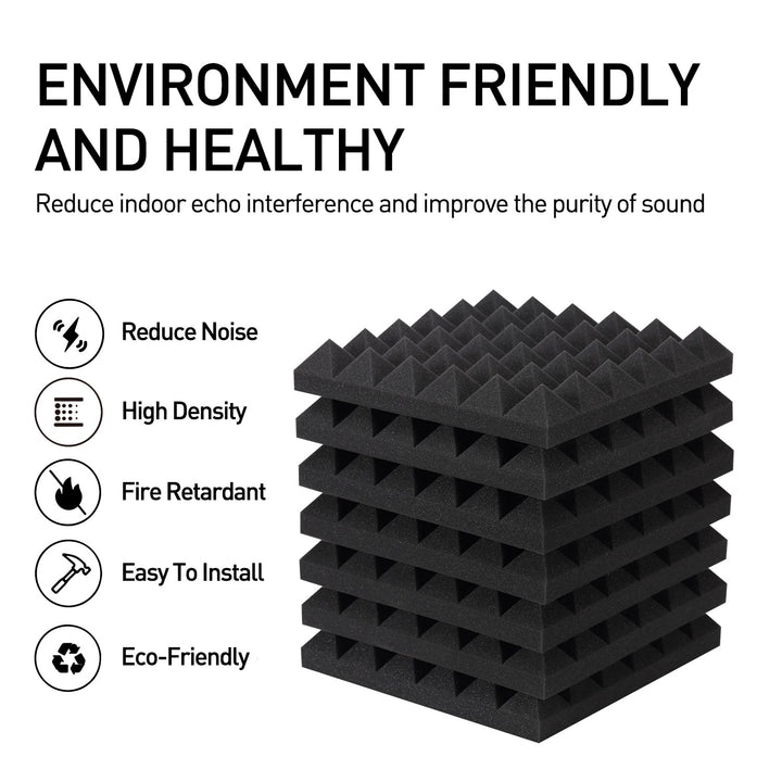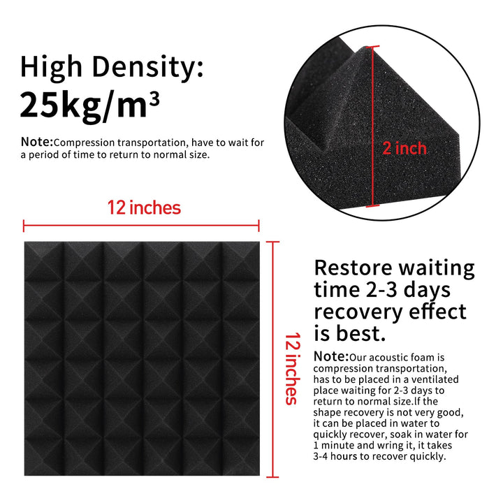 - High Density 25Kg/ : Our acoustic foam are made from a non-toxic, fireproof and high-density polyurethane material. Passed the environmental protection, is a safe and reliable product. Note: Our acoustic foam is compression transportation, has to be placed in a ventilated place waiting for 2 days to return to normal size.