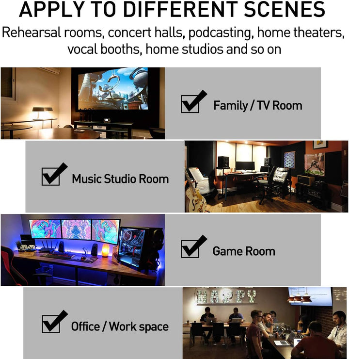 - Wide Application: For professional acoustic control, sound absorption and reverberation reduction. Suitable for your studio or office, home/recording studios, vocal booths, control rooms, home theaters, professional movie theaters, concert halls, and more. Ideal for both home studio and professional use.